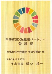 甲府市SDGs推進パートナー登録証